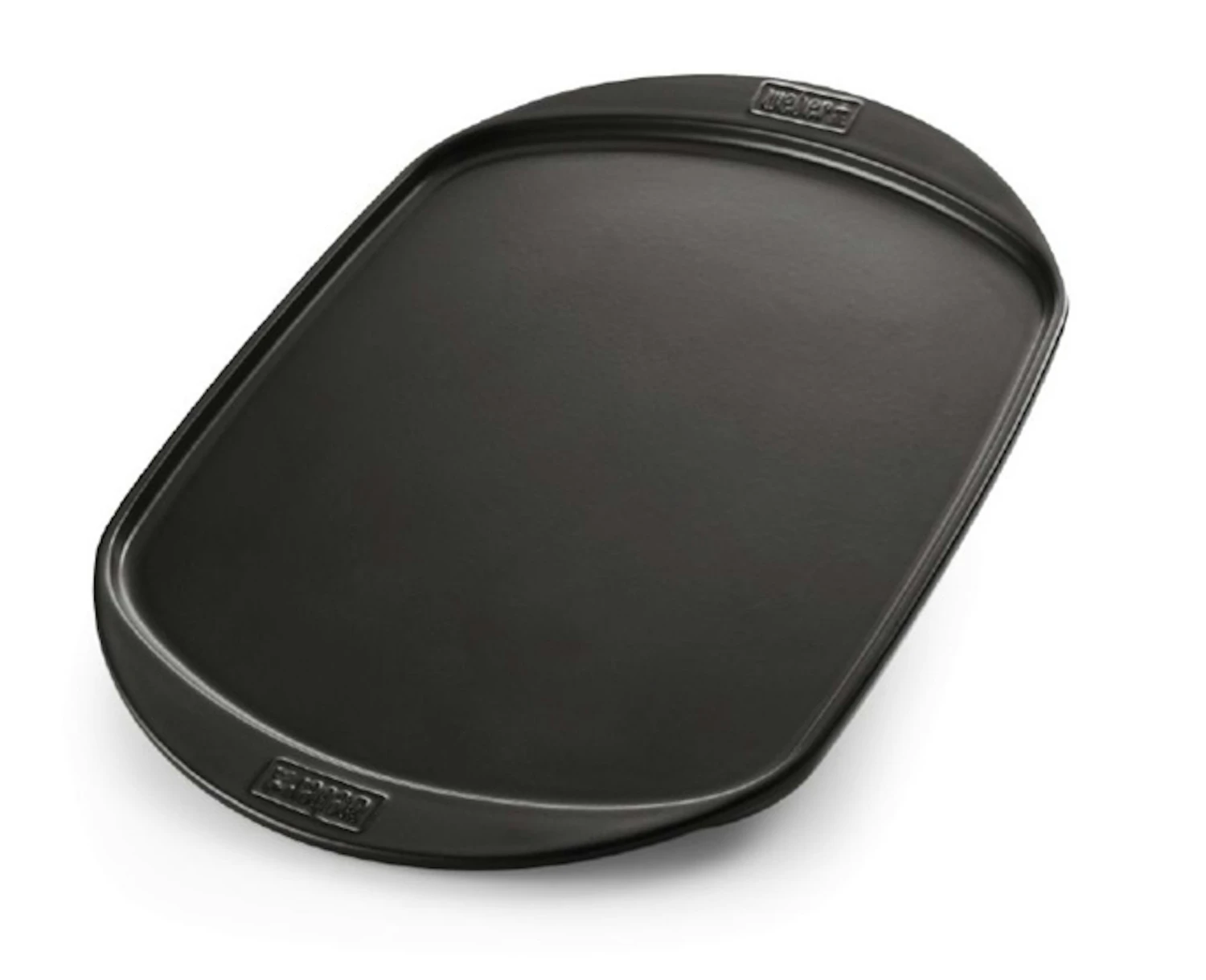 Extra flache Weber Keramische Grillplatte mit abgerundeten Ecken für die bequeme Zubereitung von Gemüse, Früchten, Fischspeisen sowie zum Warmhalten. Die Keramische Grillplatte ist für alle Holzkohlegrills ab 57 cm Durchmesser und alle Gasgrills ab Weber Q 200 geeignet.